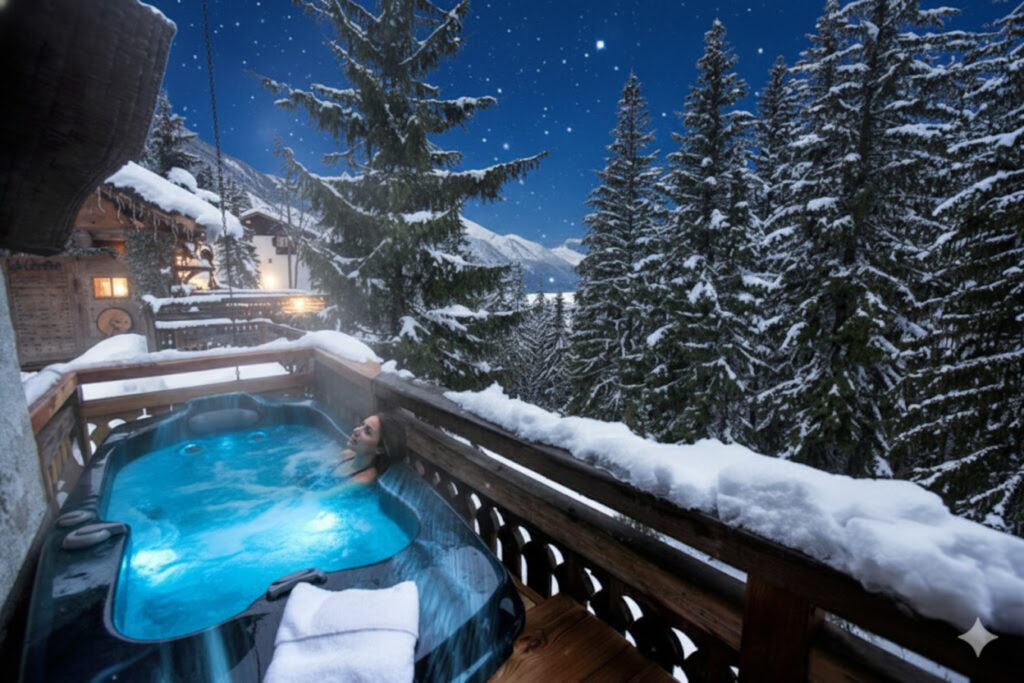 Tous les chalets ont un Jacuzzi privatif extérieur chauffé.