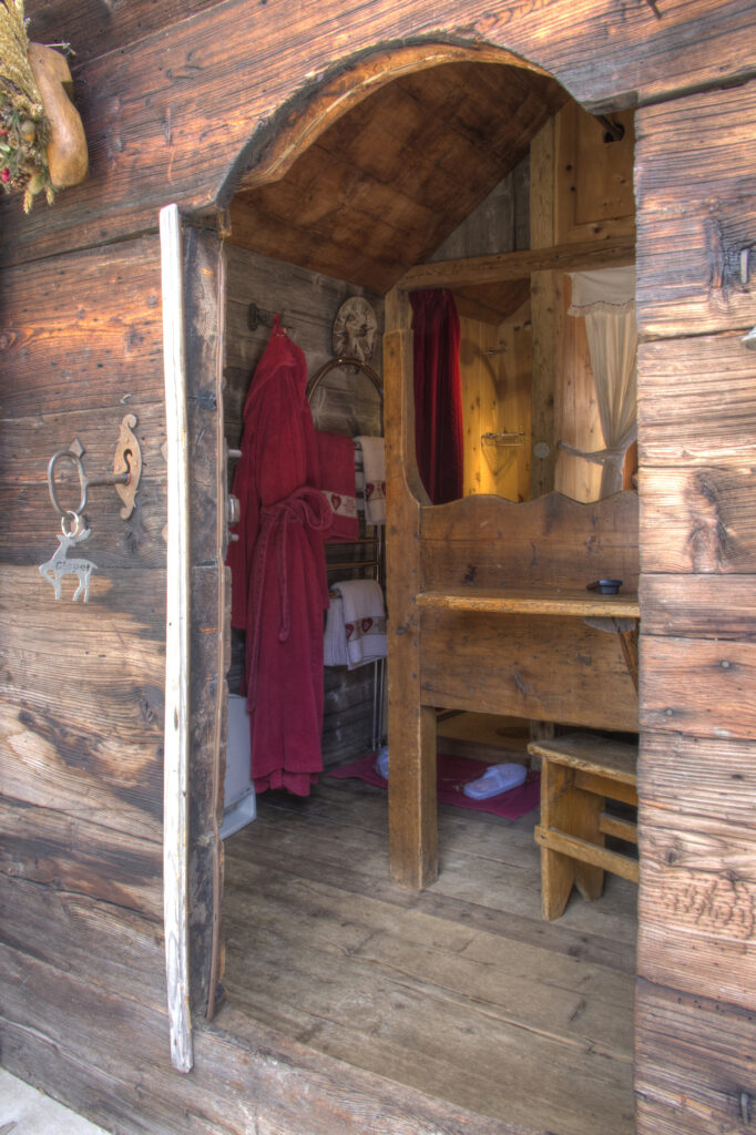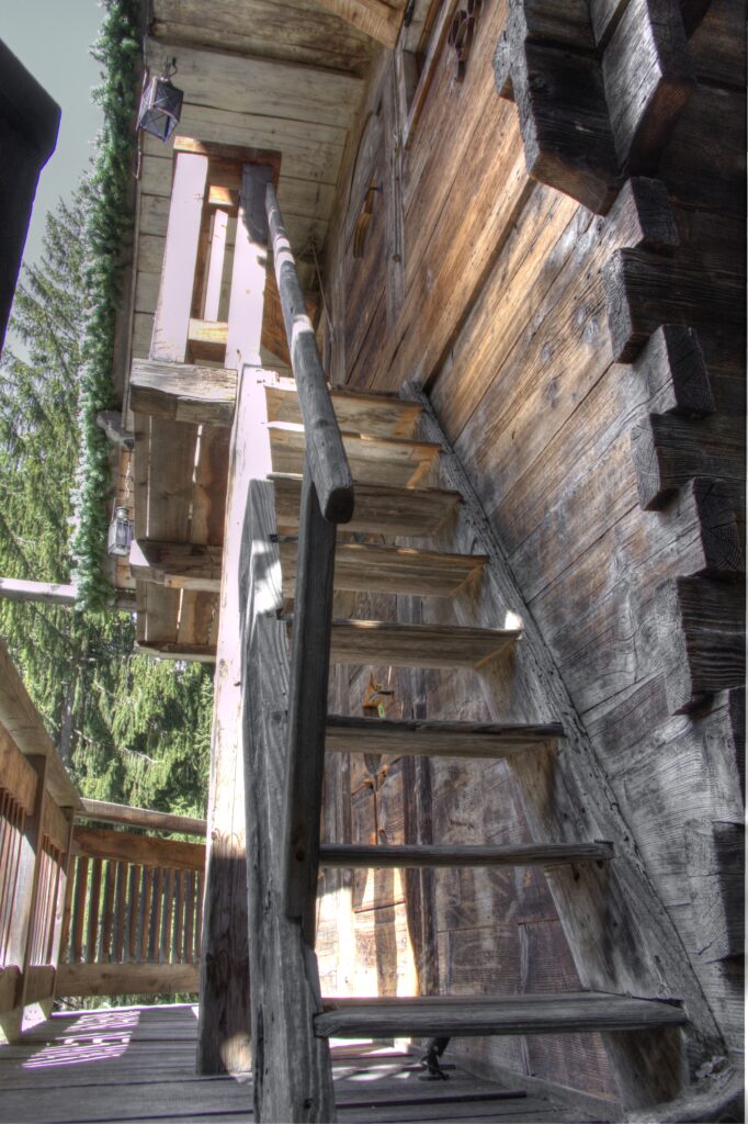 Ce chalet est idéal pour vos vacances à la montagne en pleine nature. On accède aux étages supérieurs soir par l’escalier extérieur, soit par un joli escalier de meunier à l’intérieur avec trappe de fermeture entre les étages.